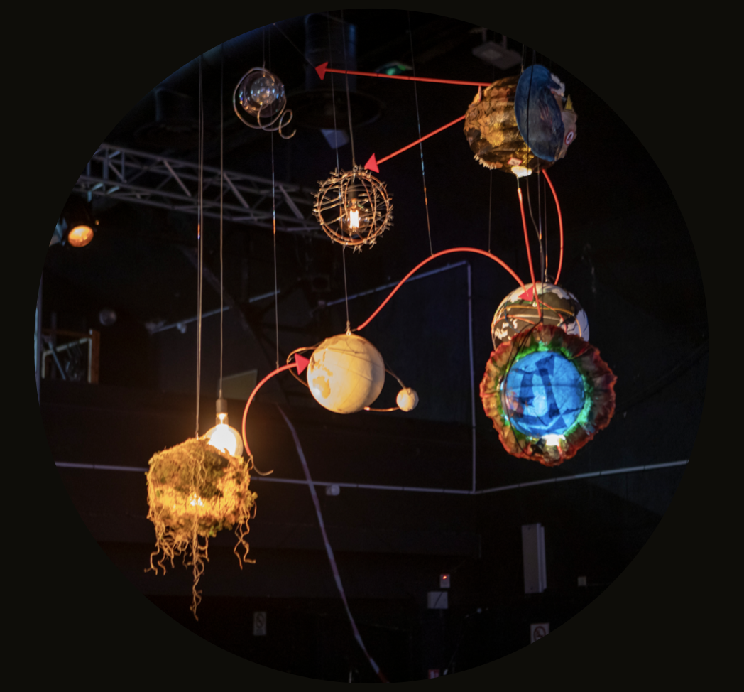 Elle est toujours accompagnée d’un ou plusieurs ateliers que l’on nomme les Ateliers du planétarium avec des processus d’enquête et de création activées avec les participants présents.